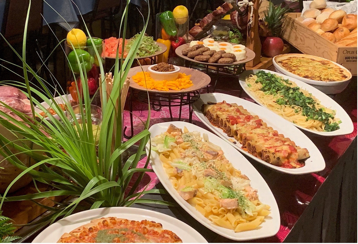 Indulge in a wide variety of buffet dishes in the 2nd-floor restaurant—from fresh appetizers and seafood to premium meats, pasta, pizza, and Okinawan specialties. During summer (April–November), the 3rd-floor open deck features a limited-time BBQ buffet under the open sky.